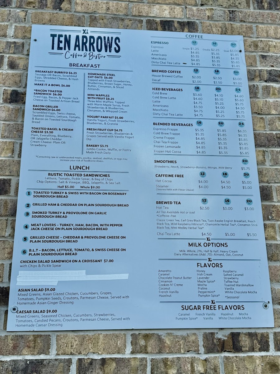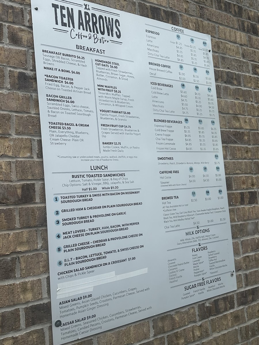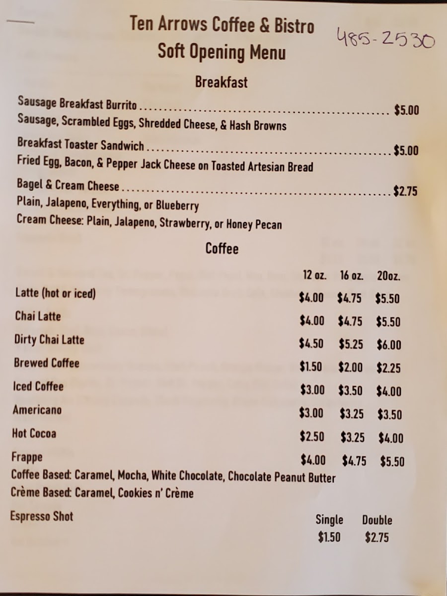Ten Arrows Coffee & Bistro Menu